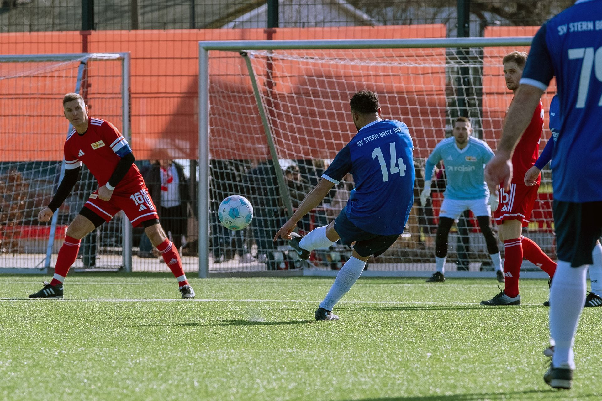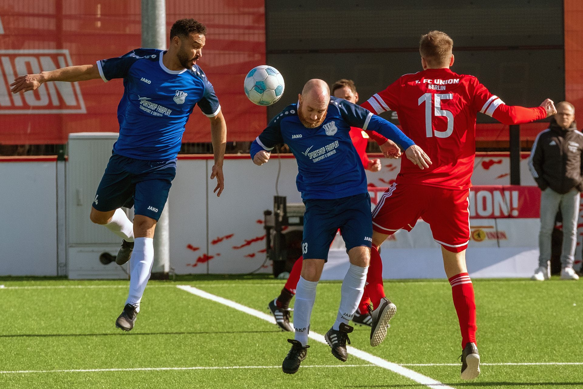 In der 11er Altliga Ü40 deklassierte der 1. FC Union Berlin in der Berlin-Liga-Partie den SV Stern Britz mit 14:2. Bereits zur Pause lagen die Eisernen mit 6:1 in Front. Am Ende trugen sich sieben Spieler in Unions Torschützenliste ein. Am erfolgreichsten war Denis Stoy, der allein mit vier Buden zum Kantersieg beitrug.