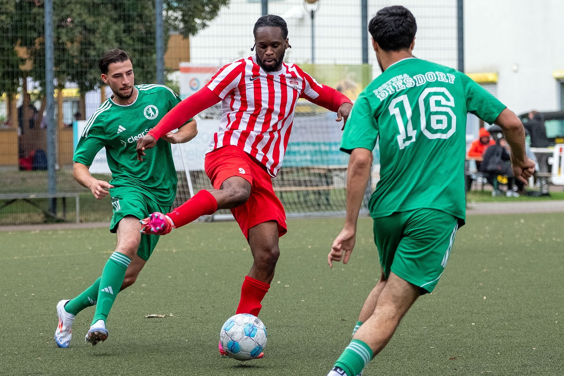 Berolina setzte sich auf dem Kunstrasen des Lasker-Sportplatzes nach einem 2:3-Pausenrückstand mit 5:4 gegen Biesdorf durch. Bis weit in die 2. Halbzeit führten die Gäste, ehe erst Yildirim der Ausgleich gelang (76.) und Ankrah in der Nachspielzeit noch den Siegtreffer für die Hausherren erzielte.